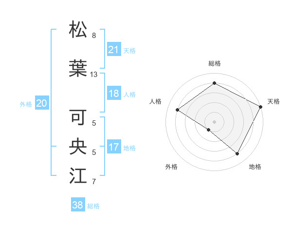 松葉 可央江さんを姓名の画数から五運を鑑定