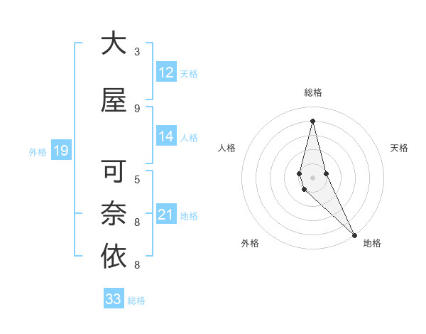 大屋 可奈依さんを姓名の画数から五運を鑑定