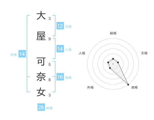 大屋 可奈女さんの外格は14画の1点!