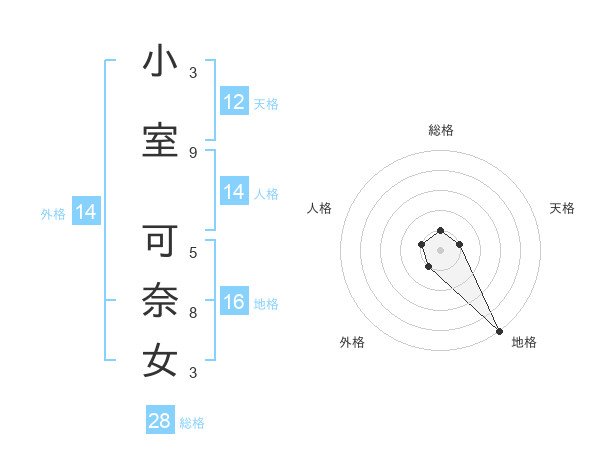 小室 可奈女さんの天格は12画の1点!