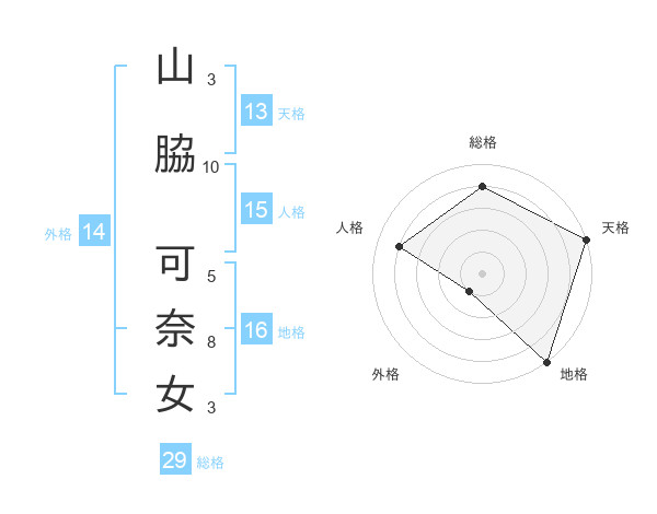 山脇 可奈女さんを姓名の画数から五運を鑑定