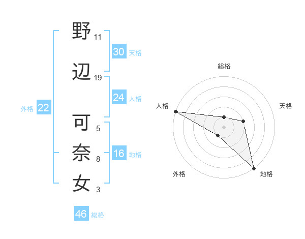 野辺 可奈女さんの天格は30画の2点!