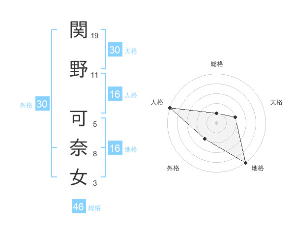 関野 可奈女さんを姓名の画数から五運を鑑定