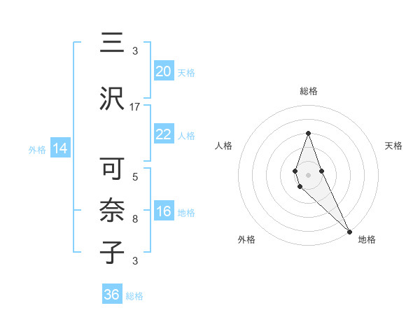 三沢 可奈子さんを姓名の画数から五運を鑑定
