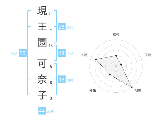 現王園 可奈子さんを姓名の画数から五運を鑑定
