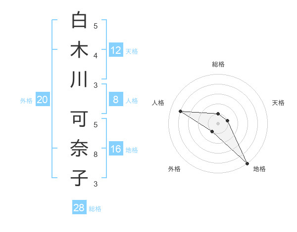 白木川 可奈子さんを姓名の画数から五運を鑑定