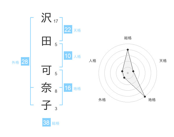 沢田 可奈子さんを姓名の画数から五運を鑑定