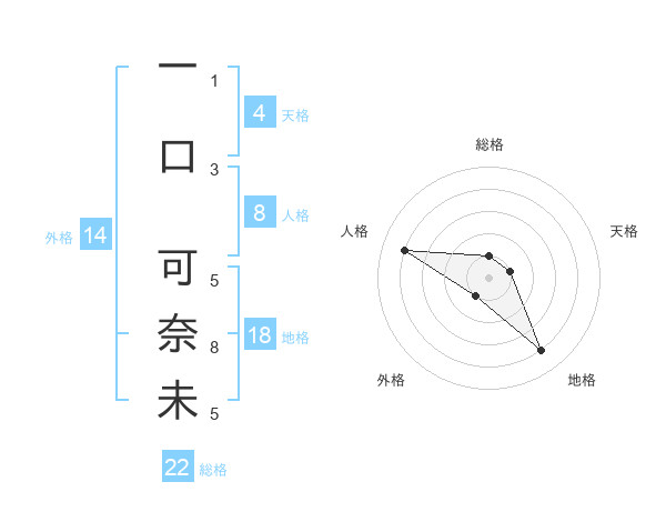 一口 可奈未さんの総格は22画の1点!