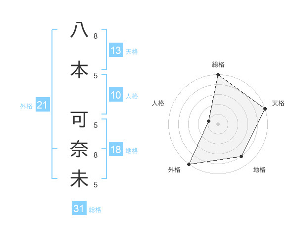 八本 可奈未さんを姓名の画数から五運を鑑定