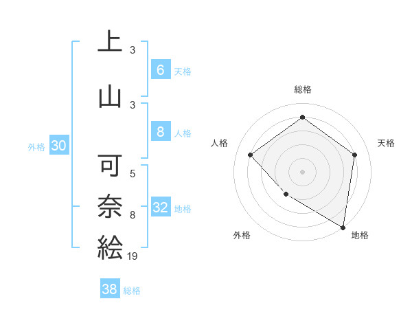 上山 可奈絵さんの総格は38画の4点!