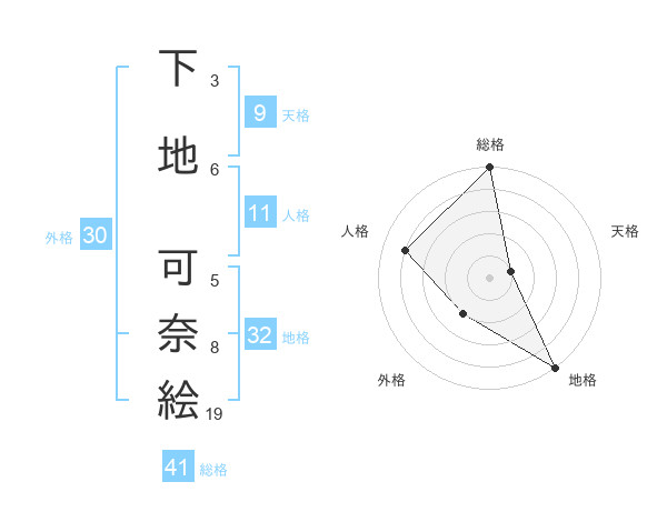 下地 可奈絵さんの総格は41画の5点!