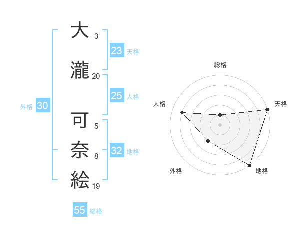 大瀧 可奈絵さんを姓名の画数から五運を鑑定