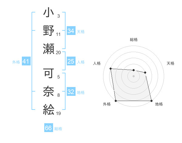 小野瀬 可奈絵さんを姓名の画数から五運を鑑定