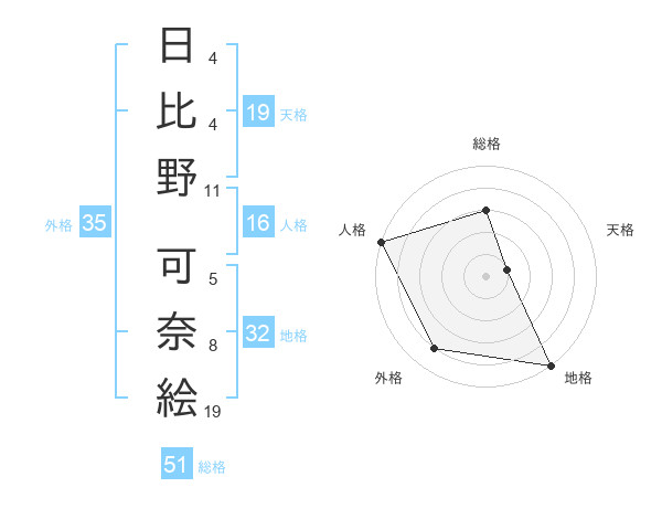 日比野 可奈絵さんを姓名の画数から五運を鑑定
