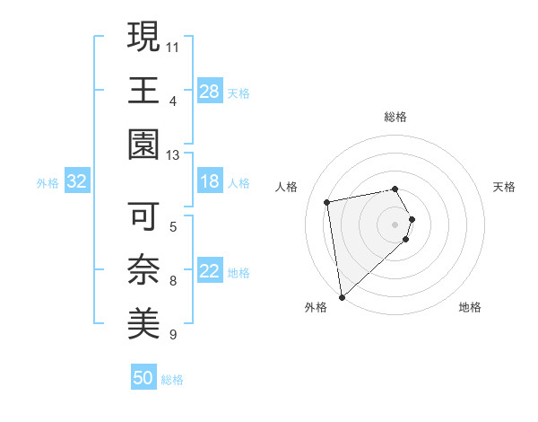 現王園 可奈美さんを姓名の画数から五運を鑑定