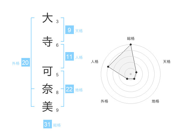 大寺 可奈美さんの総格は31画の5点!