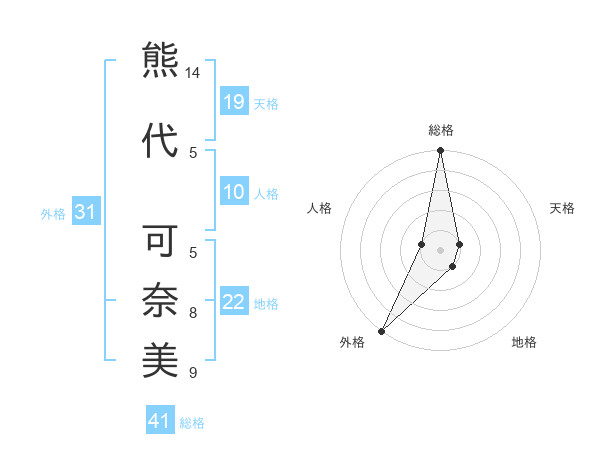 熊代 可奈美さんを姓名の画数から五運を鑑定
