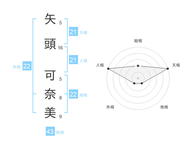 矢頭 可奈美さんの天格は21画の5点!