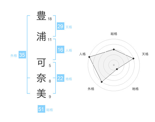 豊浦 可奈美さんの総格は51画の3点!