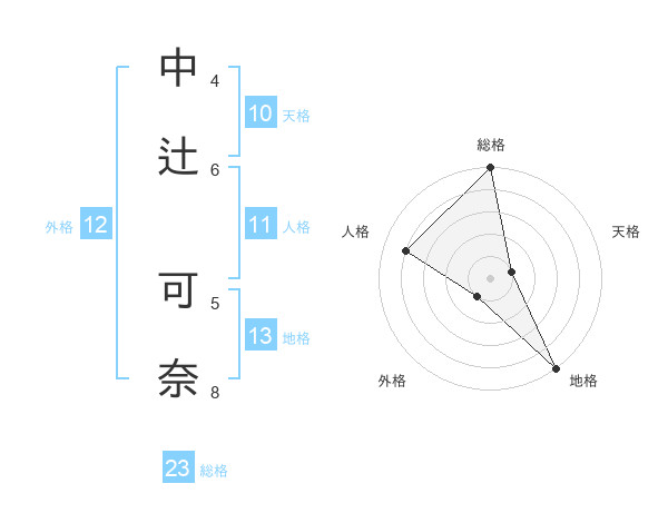 中辻 可奈さんを姓名の画数から五運を鑑定