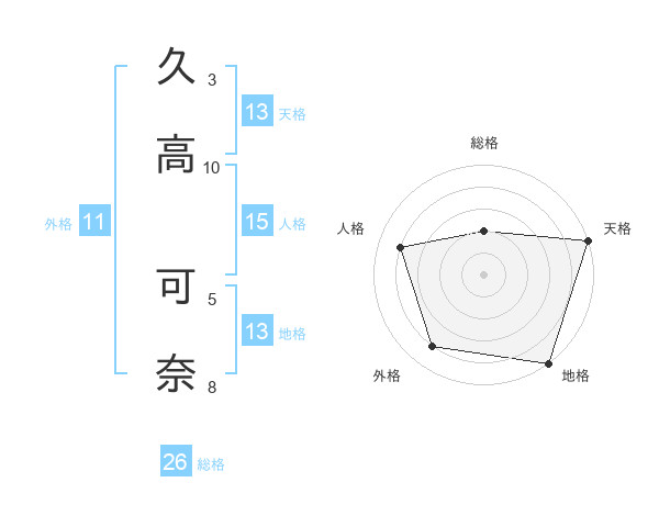 久高 可奈さんの地格は13画の5点!