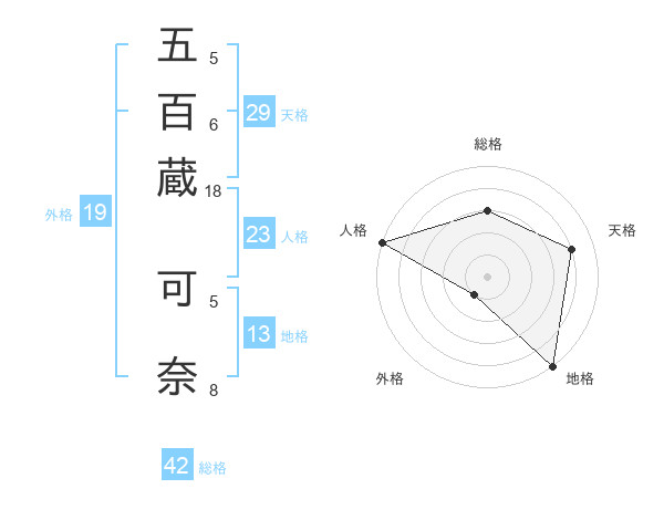 五百蔵 可奈さんを姓名の画数から五運を鑑定