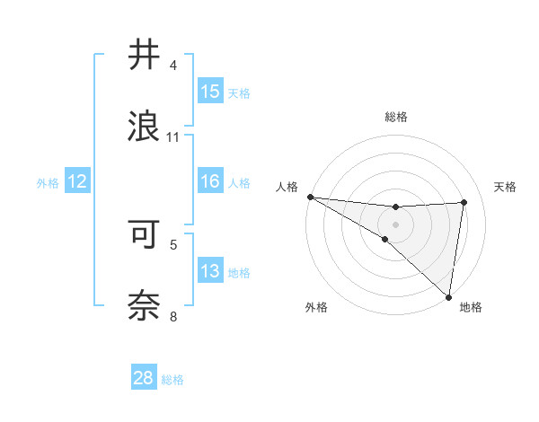 井浪 可奈さんの外格は12画の1点!