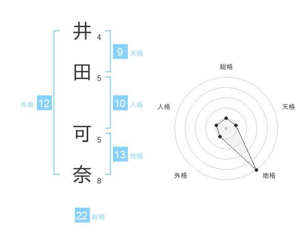 井田 可奈さんの地格は13画の5点!