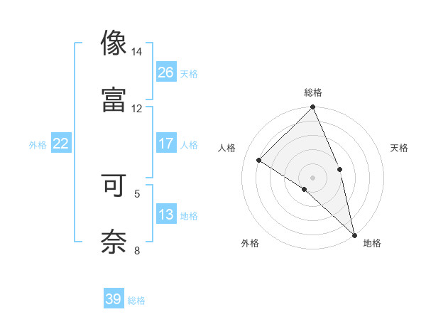 像富 可奈さんの総格は39画の5点!
