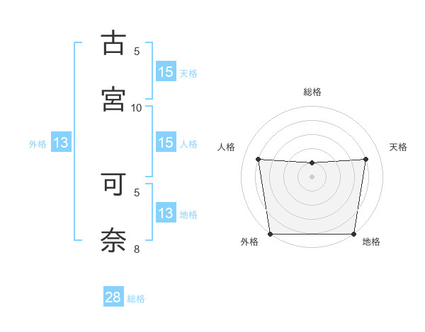 古宮 可奈さんの外格は13画の5点!