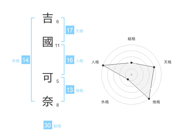 吉國 可奈さんの天格は17画の4点!