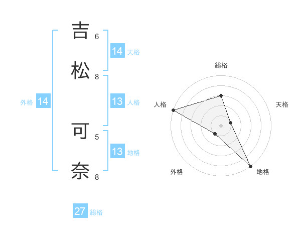 吉松 可奈さんの地格は13画の5点!