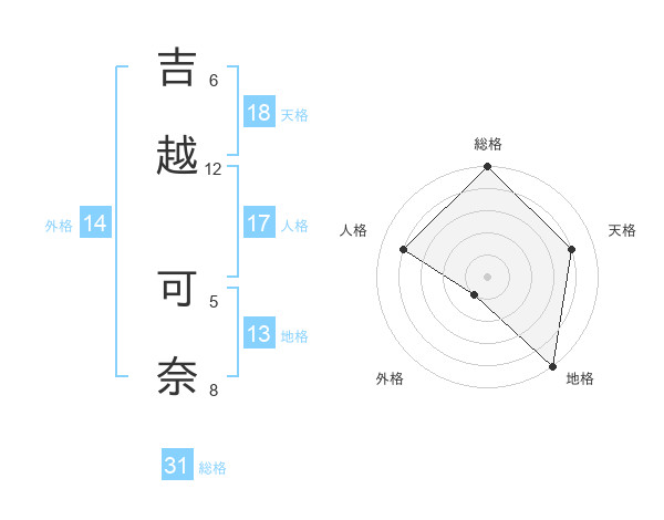 吉越 可奈さんを姓名の画数から五運を鑑定