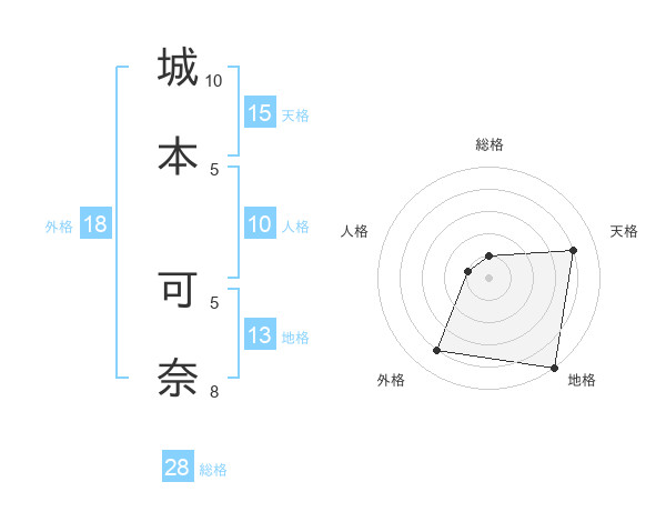 城本 可奈さんの地格は13画の5点!