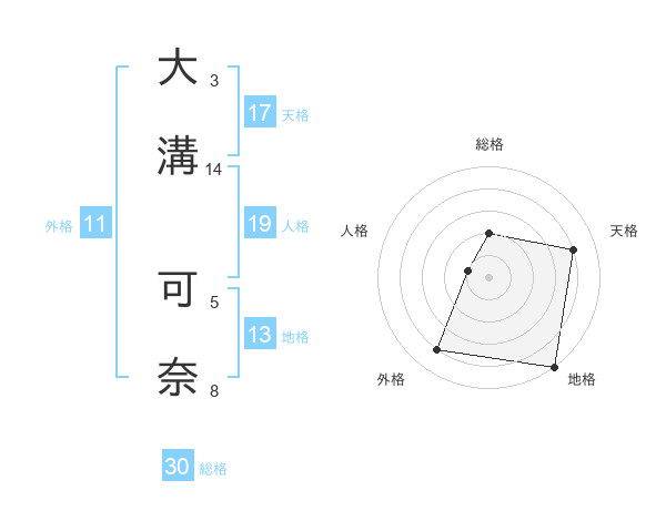 大溝 可奈さんの天格は17画の4点!