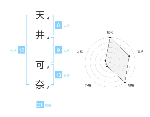 天井 可奈さんの総格は21画の5点!
