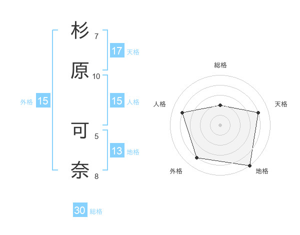 杉原 可奈さんを姓名の画数から五運を鑑定