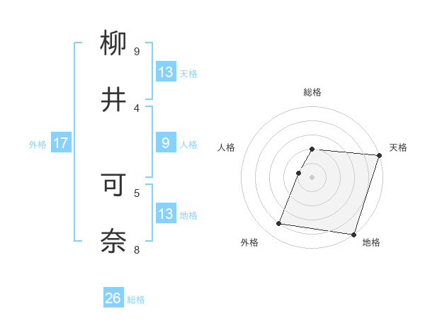 柳井 可奈さんの天格は13画の5点!