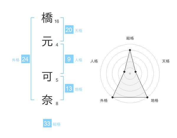 橋元 可奈さんを姓名の画数から五運を鑑定