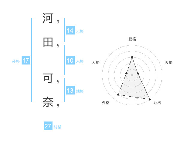 河田 可奈さんの総格は27画の3点!