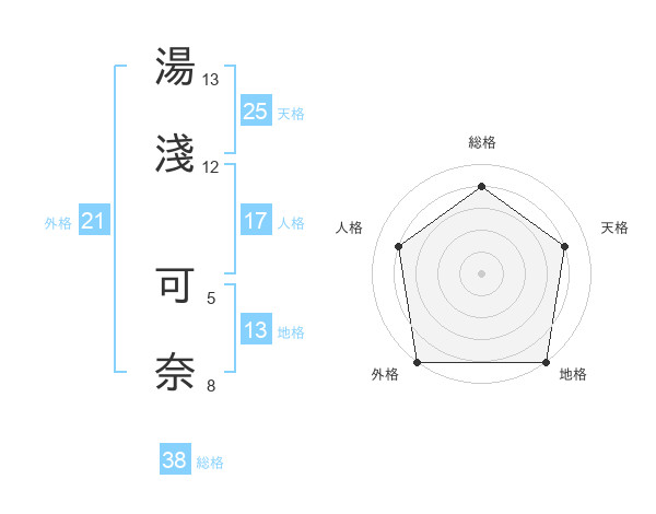 湯淺 可奈さんの総格は38画の4点!