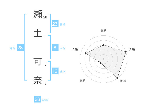 瀬土 可奈さんの天格は23画の5点!