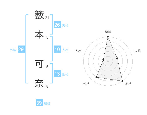 籔本 可奈さんを姓名の画数から五運を鑑定