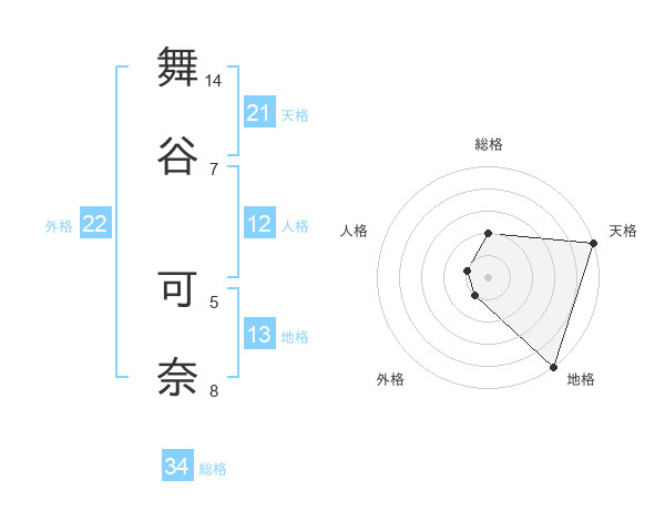 舞谷 可奈さんの地格は13画の5点!