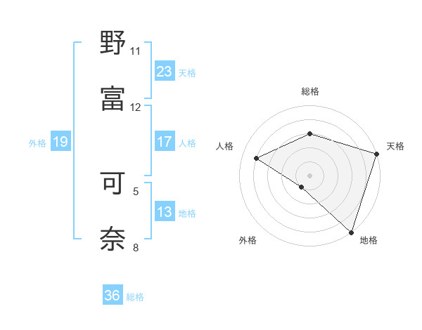 野富 可奈さんの天格は23画の5点!