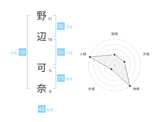 野辺 可奈さんを姓名の画数から五運を鑑定