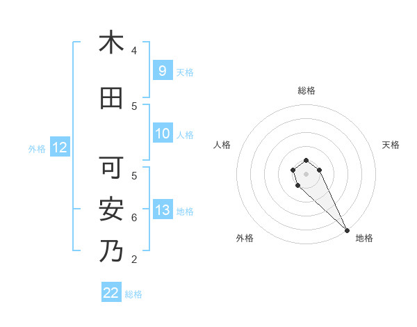 木田 可安乃さんの地格は13画の5点!
