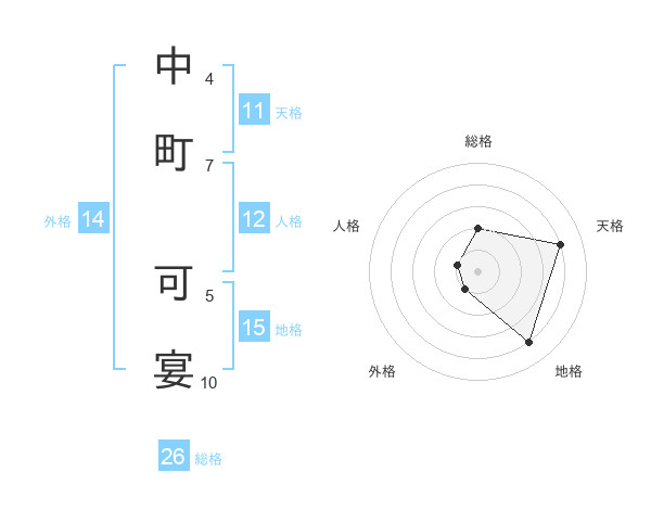 中町 可宴さんの総格は26画の2点!