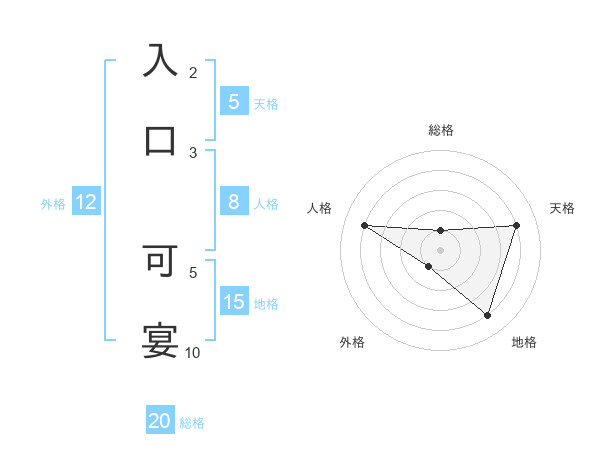 入口 可宴さんの総格は20画の1点!