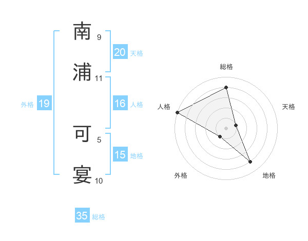南浦 可宴さんの総格は35画の4点!